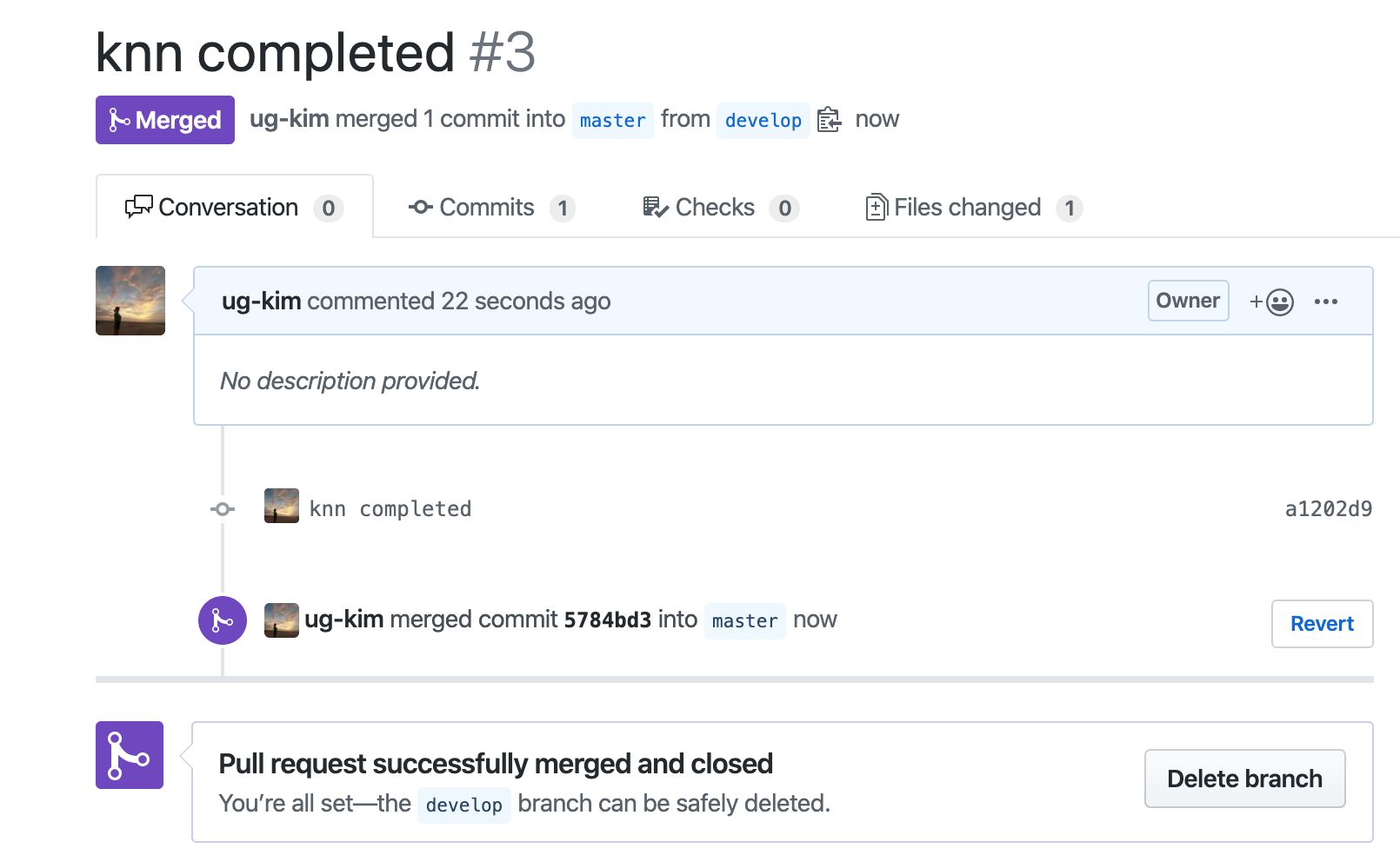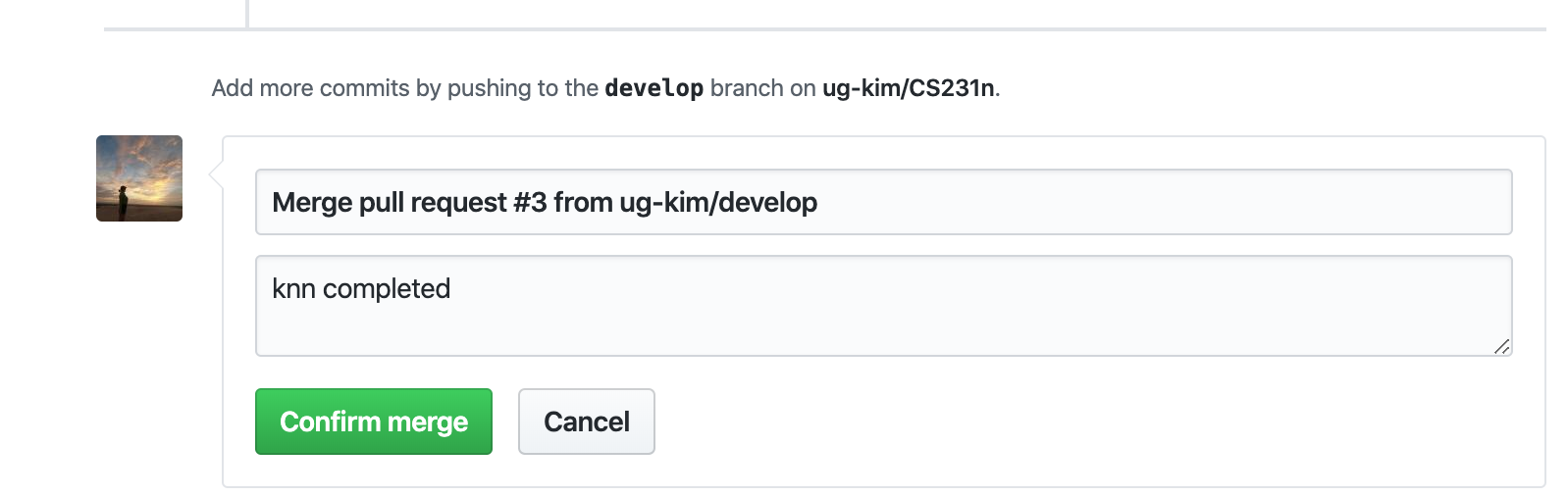 - repository 담당자가 자신일 경우(혼자 진행하는 프로젝트): conflict 되는 코드가 없다면 순서대로 Pull request를 처리하고 merge 해주면 된다.