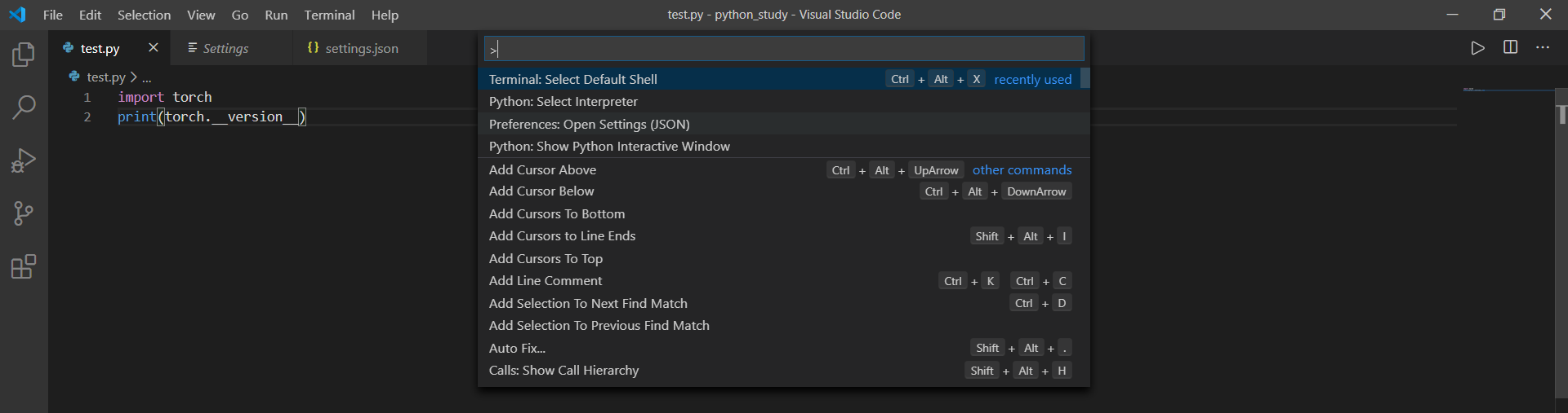 - Ctrl + Shift + P(팔레트 선택)을 누르고 명령어에 shell을 친다.