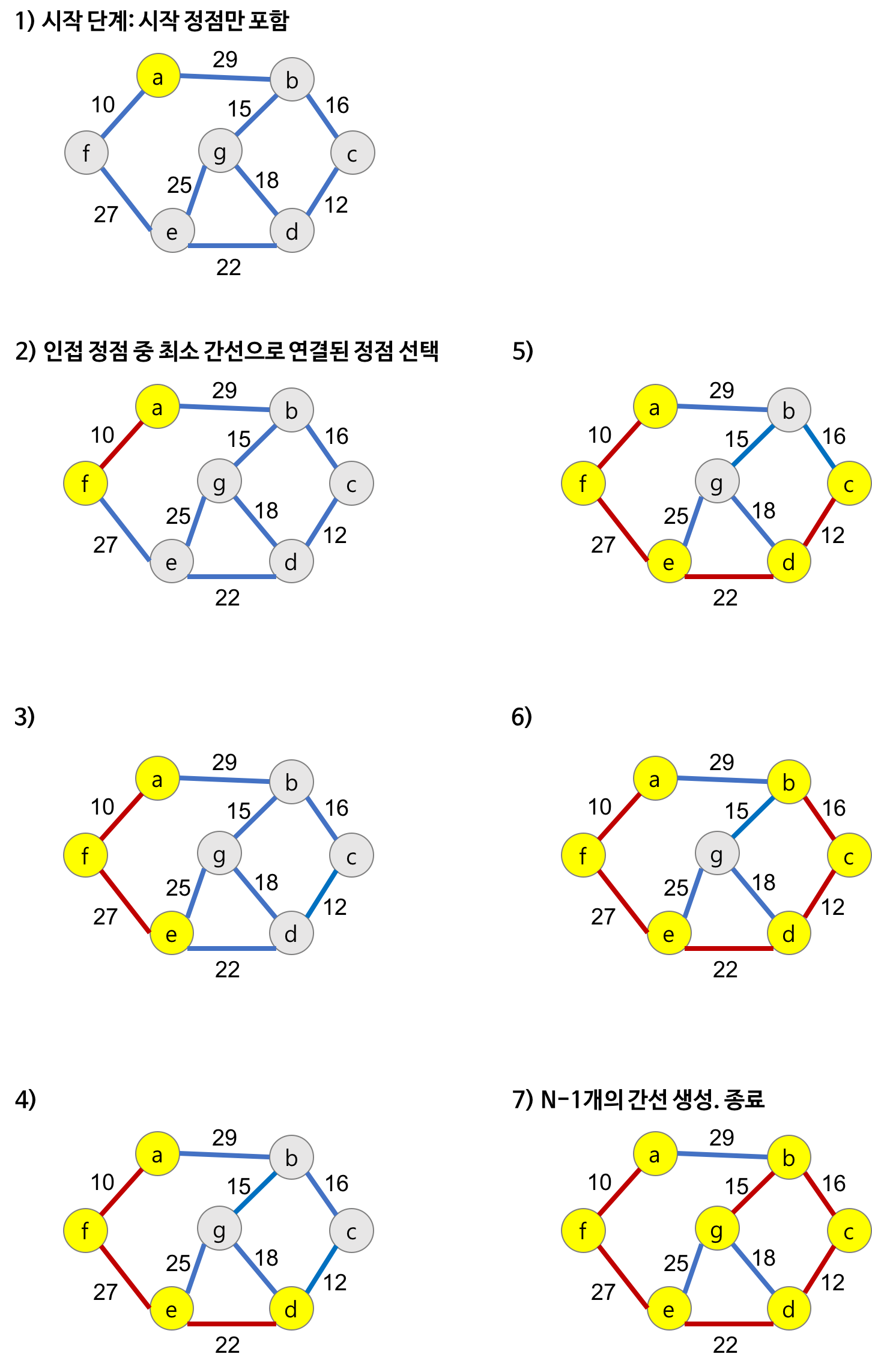 3. 위의 과정을 트리가 (N-1)개의 간선을 가질 때까지 반복한다