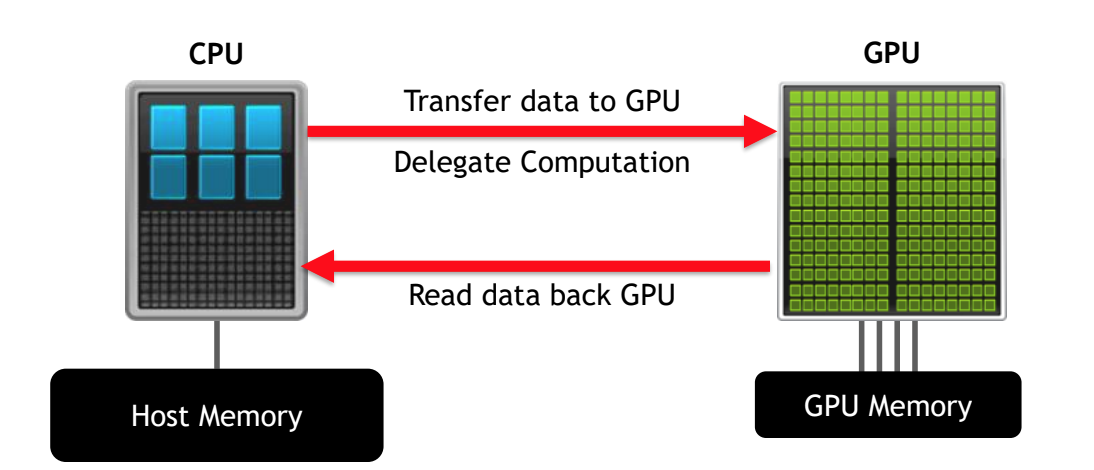 CPU는 GPU에 data를 보내서 연산을 시키고, 연산된 결과 데이터를 GPU가 다시 CPU로 보낸다.