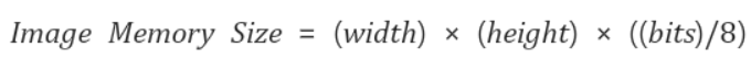 - 이미지의 가로(width)와 세로(height)의 크기 곱에 각 픽셀이 차지하는 비트수(bits)를 곱해주면 메모리에서 차지하는 공간이 나온다.