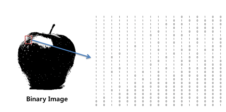 - 각 픽셀이 1bit로 이루어져 있으며, 각 픽셀은 오직 밝음(1)과 어두움(0) 두 가지 만을 표현한다.
