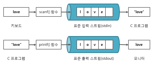 - C 프로그램은 파일이나 콘솔의 입출력을 직접 다루지 않고, 스트림이라는 것을 통해 다룬다.